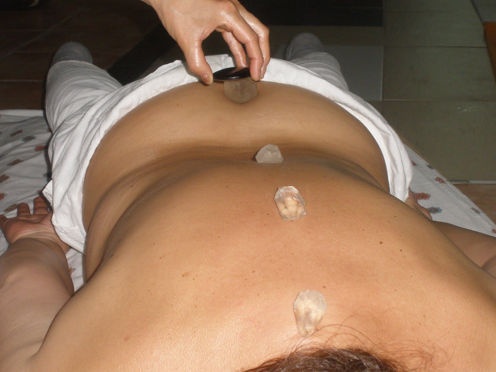 La colocación de la piedra en la zona afectada permite aflorar lo que no nos hemos permitido sentir, cristalizando como enfermedad. Debajo de la máscara del Yo descansan ocultas todo tipo de emociones negativas, porque no podemos proyectarlas hacia afuera“.